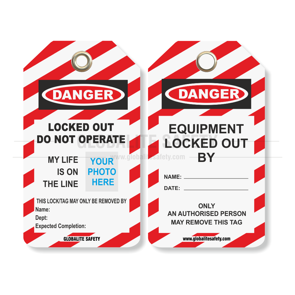 • These lockout tags can be customized with any information such as the company logo, safety statements, employee details (like name and ID), equipment IDs, and specific lockout instructions, different languages, graphics.